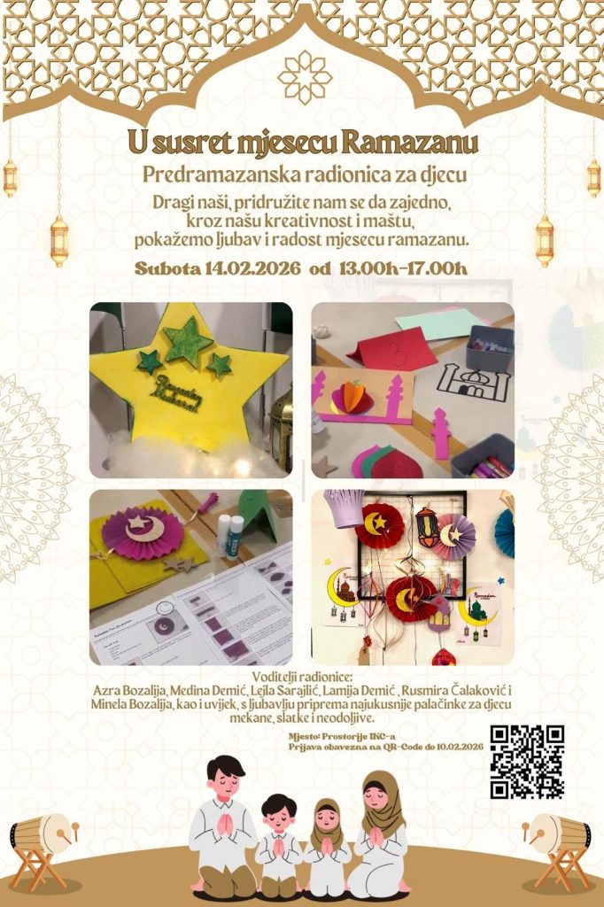 Sa radošću vas obavještavamo da ćemo, kao što je najavljeno i ove godine organizirati predramazansku radionicu za naše najmlađe pod nazivom „U susret Ramazanu“.