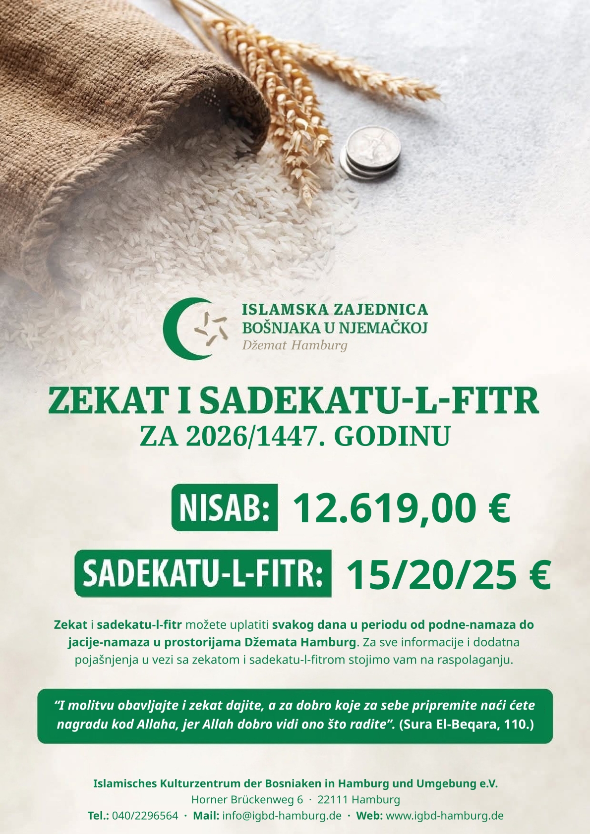 Die Höhe des Sadekatu-l-fitr für Ramadan 1447 Hidschri (2026) beträgt gemäß der Empfehlung der Islamischen Gemeinschaft der Bosniaken in Westeuropa: